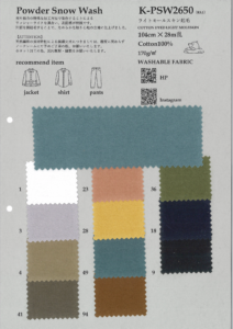 2026.01.20 【K-PSW2650】新作追加いたしました! 【K-PSW2650 ライトモールスキン起毛】 素材:C100% リスク品のPSW2650 ライトモールスキンに片面微起毛させました ピーチスキンのようなほわっとした触り心地 早めの秋物などに良さげかも、、、 商品ページ 【https://koyamainternational.com/?p=2905】 一覧に戻る